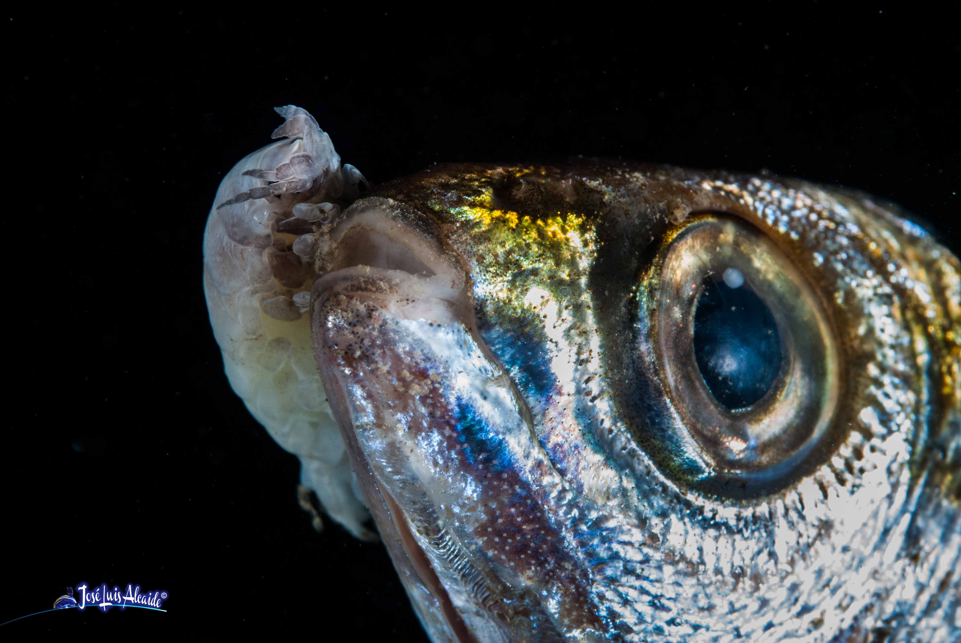 En las siguientes dos fotografías, se ven a dos ejemplares en el cuerpo de un magre, Lithognathus mormyrus. Uno de ellos evidencia el gran tamaño del parásito.