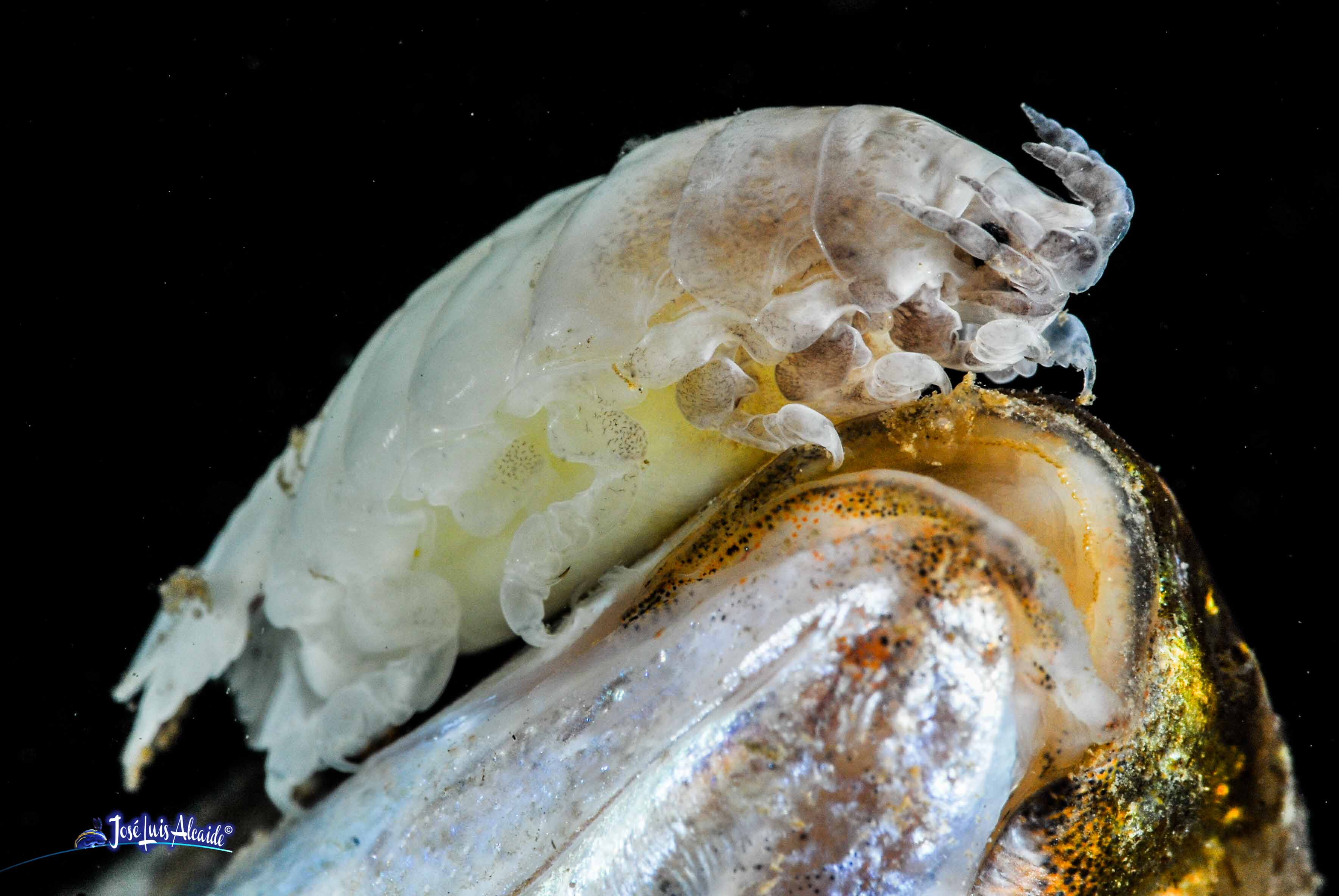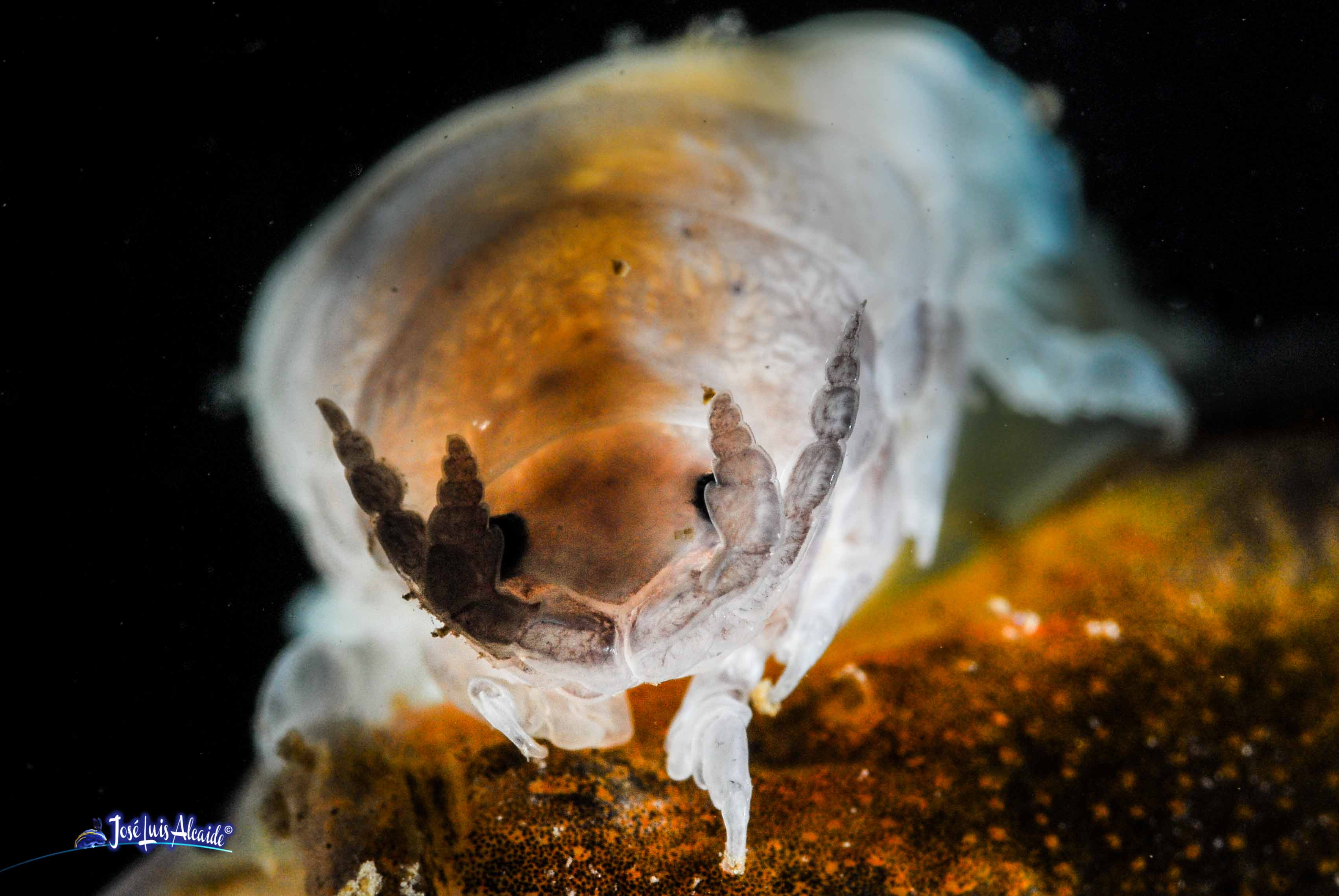 Crustáceo marino, comúnmente llamado piojo de mar, con su cuerpo segmentado con placas claramente diferenciadas de forma aplanada, formando entre ellas una coraza, muy similar a las cochinillas de tierra (bichos bola) Armadillidium vulgare, que curiosamente estos son el único crustáceo que vive en tierra firme y son más que parientes.
