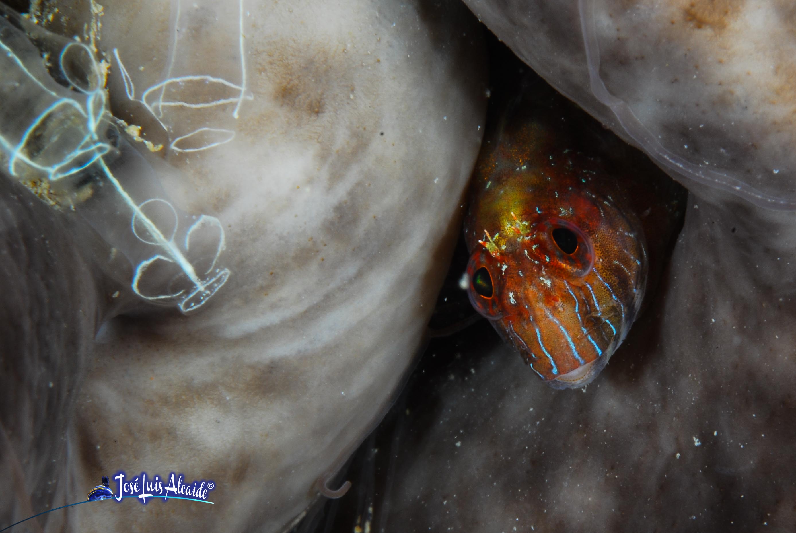Viven a no mucha profundidad dentro de oquedades en las rocas, pero en las paredes verticales, como la segunda imagen que tiene la morada dentro de una esponja.